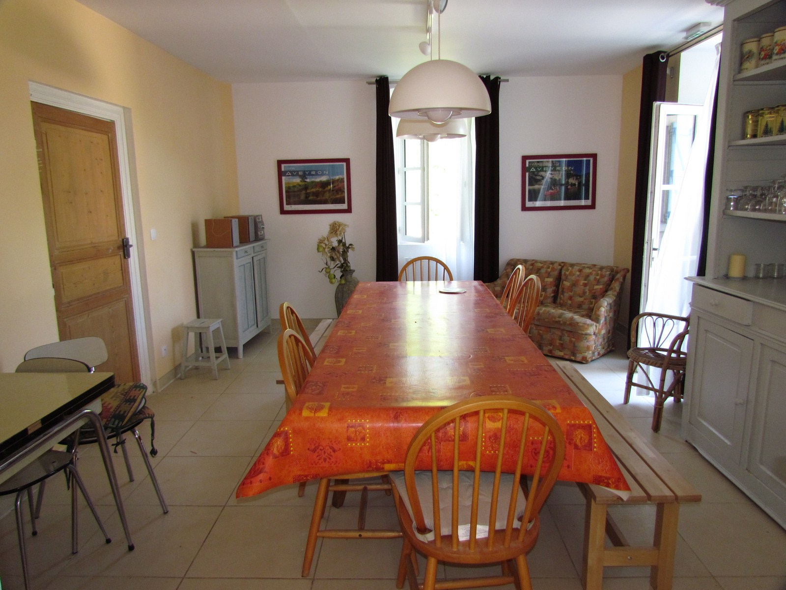 une grande table pour partager les repas, une mini-chaine hifi,